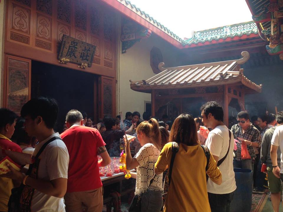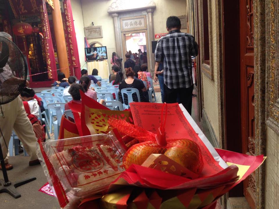 เราก็เดินไปเรื่อย…. กว่าจะถึงก็ไกลพอสมควร คนเยอะมาก เพราะตลอกเส้นทางเค้าขายของอยู่บนฟุตบาทกันทั้งขนมไหว้ ขนมแบบจีนๆ เครื่องไหว้ ผลไม้ต่างๆ คนก็เดินเยอะจนแน่นแทบจะขี่คอกันอยู่แล้ว