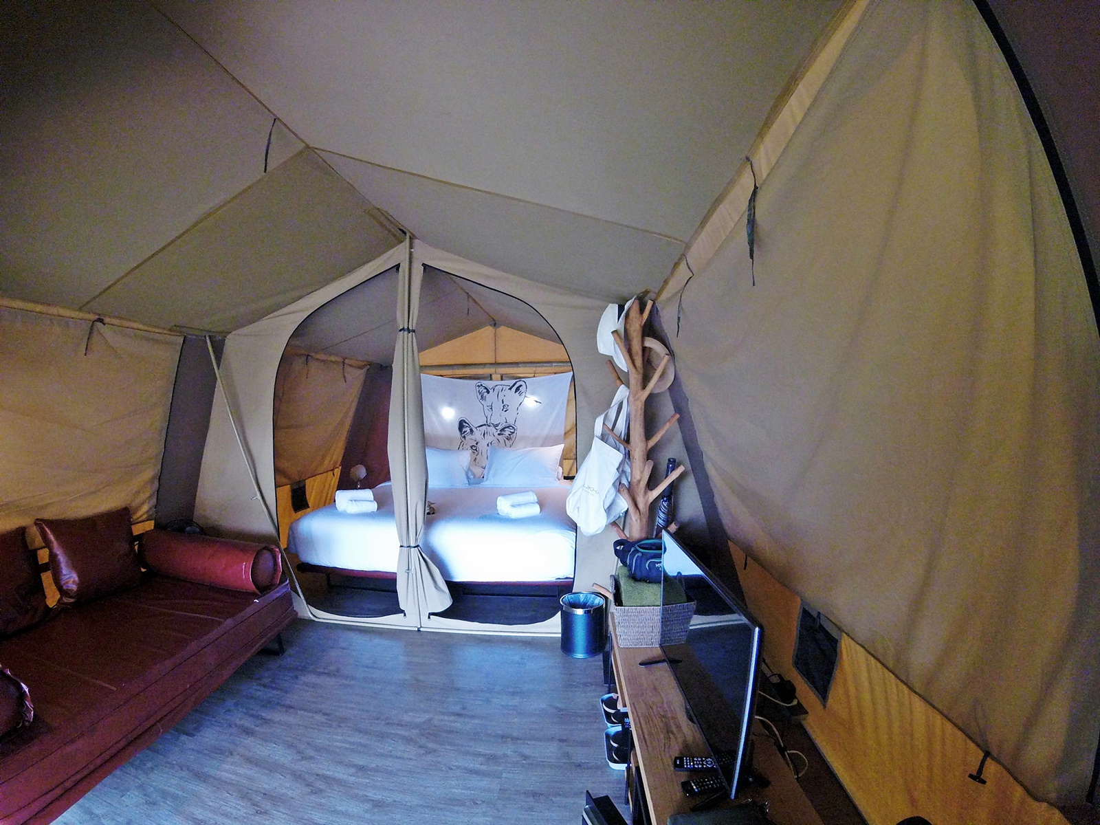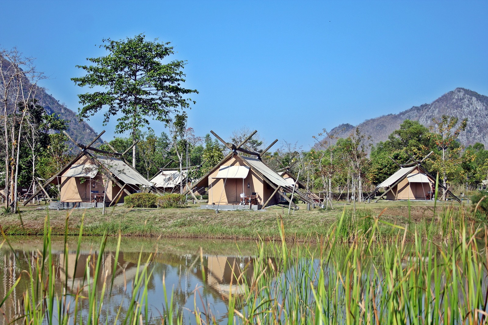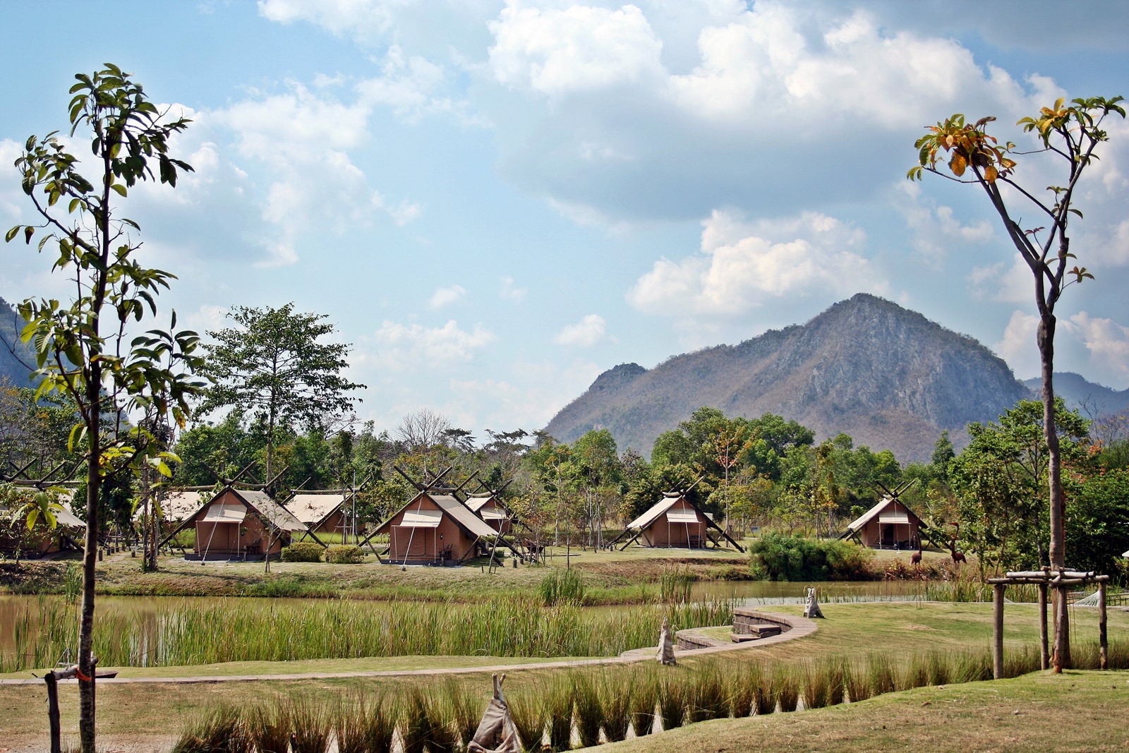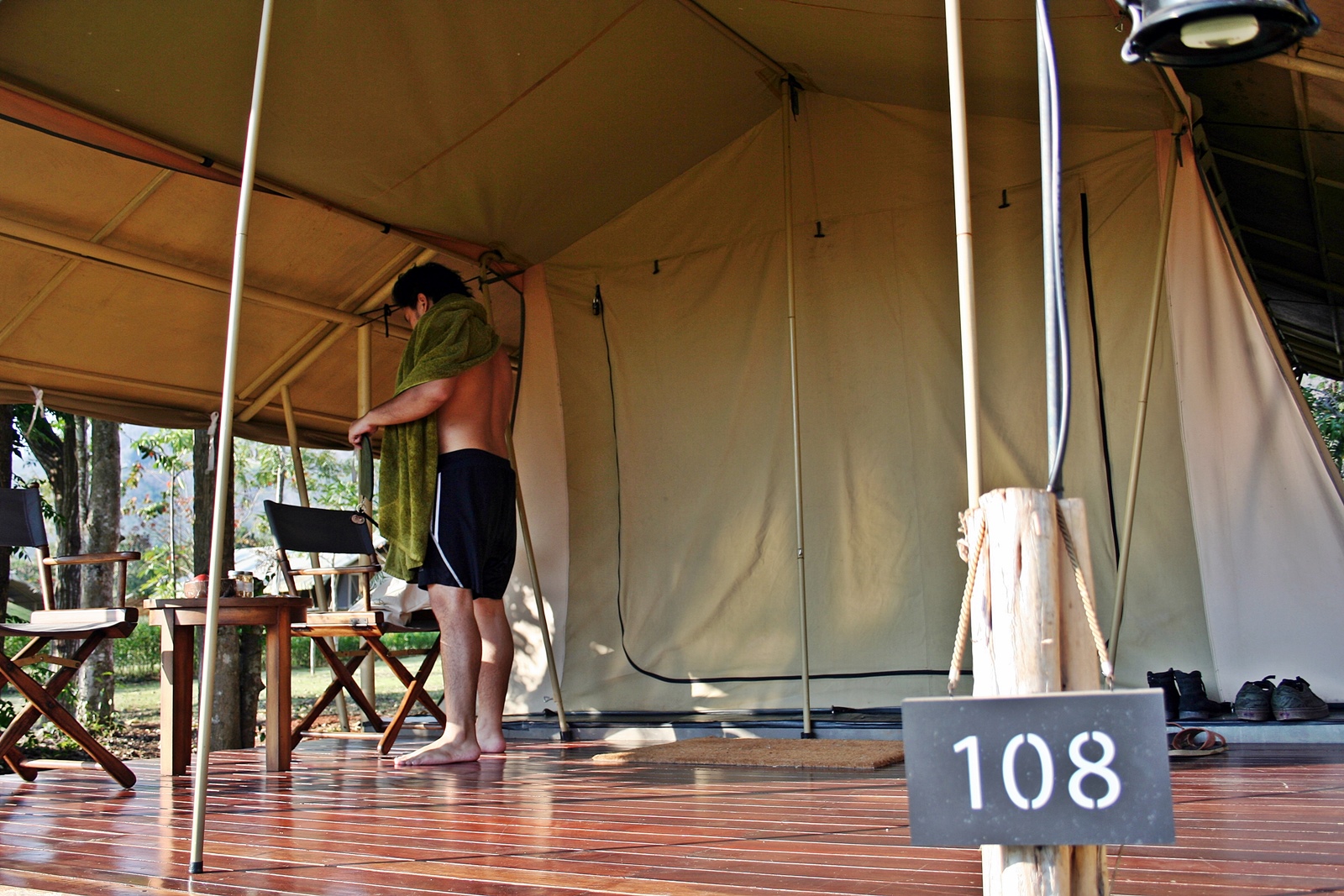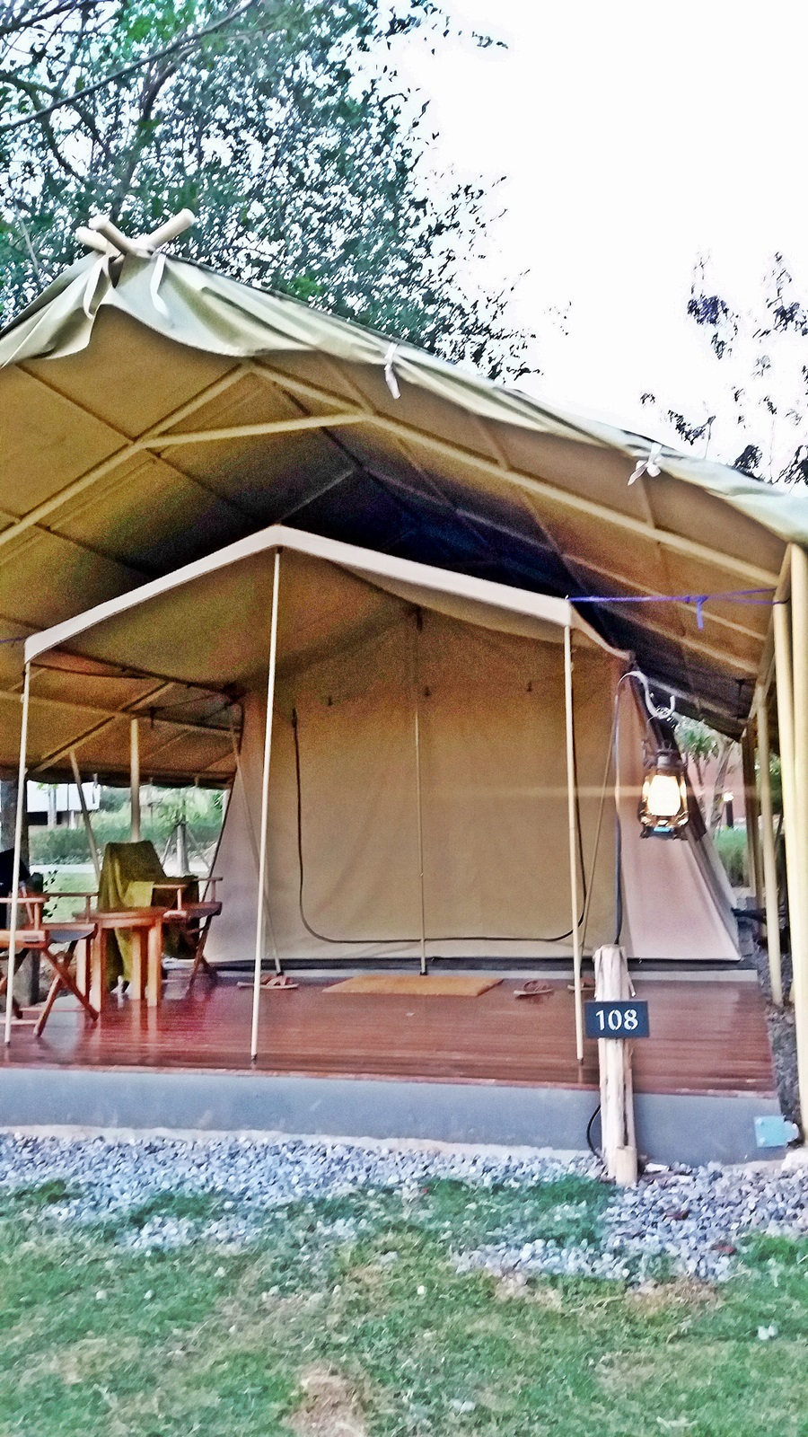 เราได้เต้นท์หมายเลข 108 ใกล้สระว่ายน้ำ แถมเดินจากล็อบบี้รีสอร์ทนิดเดียวเอง และยังใกล้บึงน้ำอีกด้วยฮะ