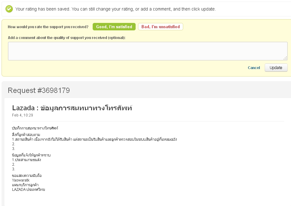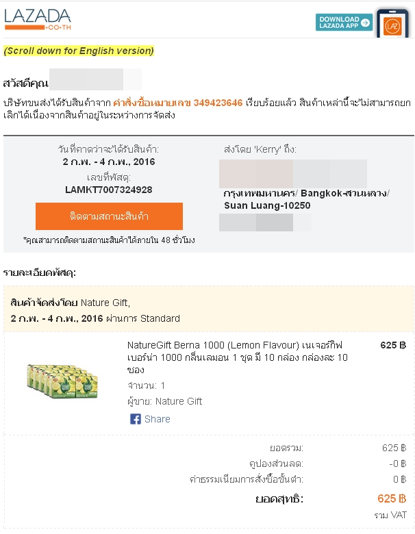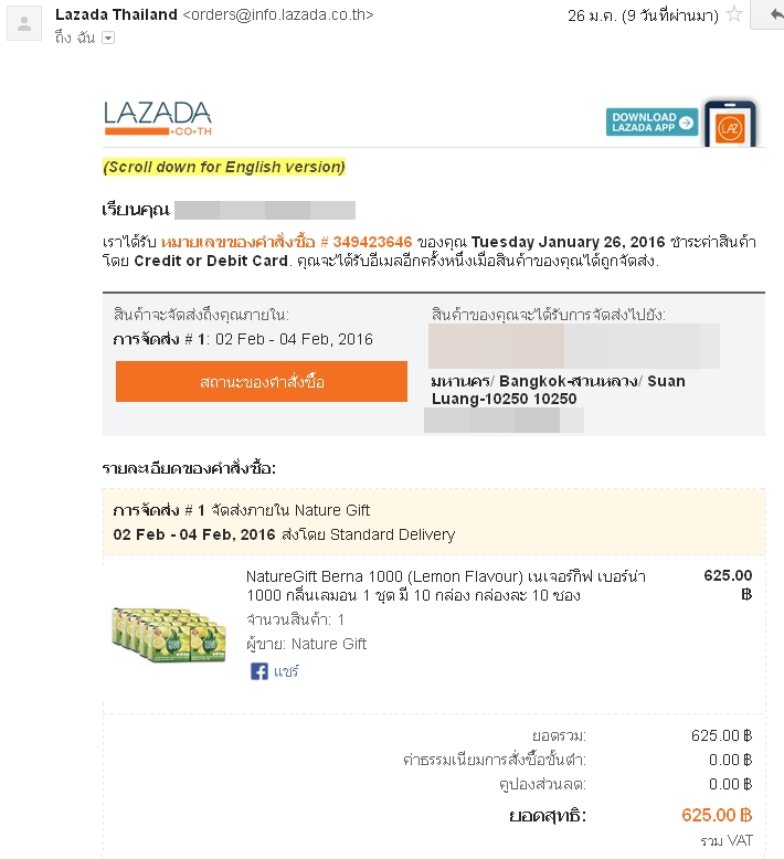 เราได้ทำการสั่งซื้อสินค้าผ่านทาง lazada ไปตั้งแต่วันที่ 26 มกราคม 2559