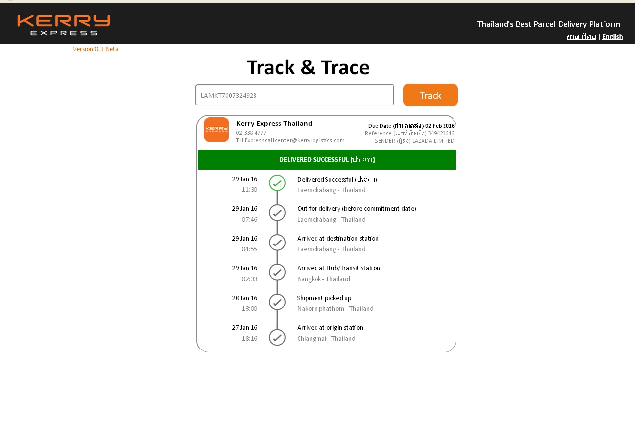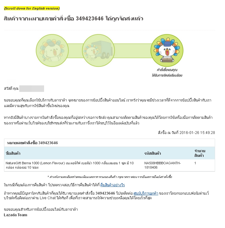 วันที่ 30 มกราคม 2559 มี e-mail เข้ามา ว่าได้จัดส่งของเรียบร้อย