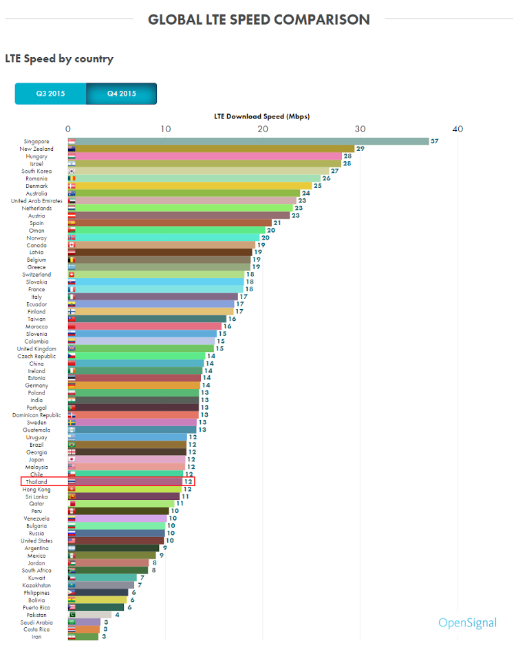 -ประเทศที่ LTE เร็วสุดตกเป็นของสิงคโปร์ที่ความเร็วเฉลี่ย 37Mbps รองลงมาคือนิวซีแลนด์ที่ 29Mbps