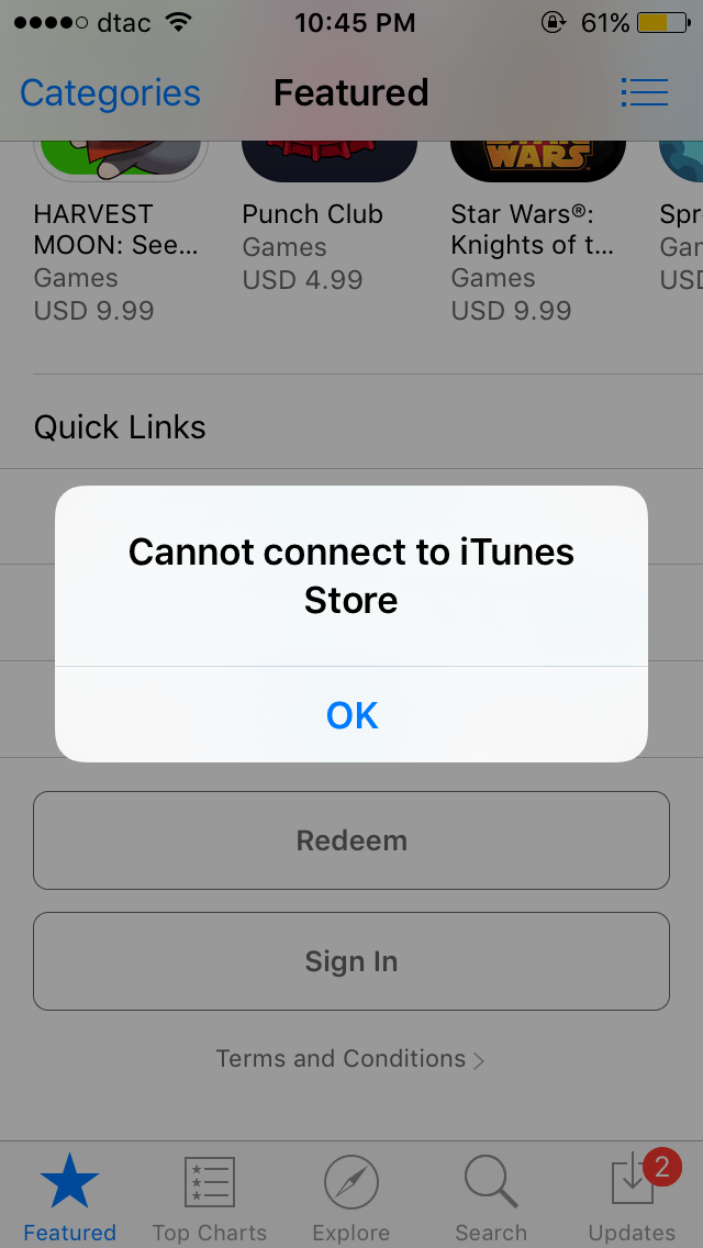 เชื่อมต่อ app store ไม่ได้ แก้ไขอย่างไรดีครับ