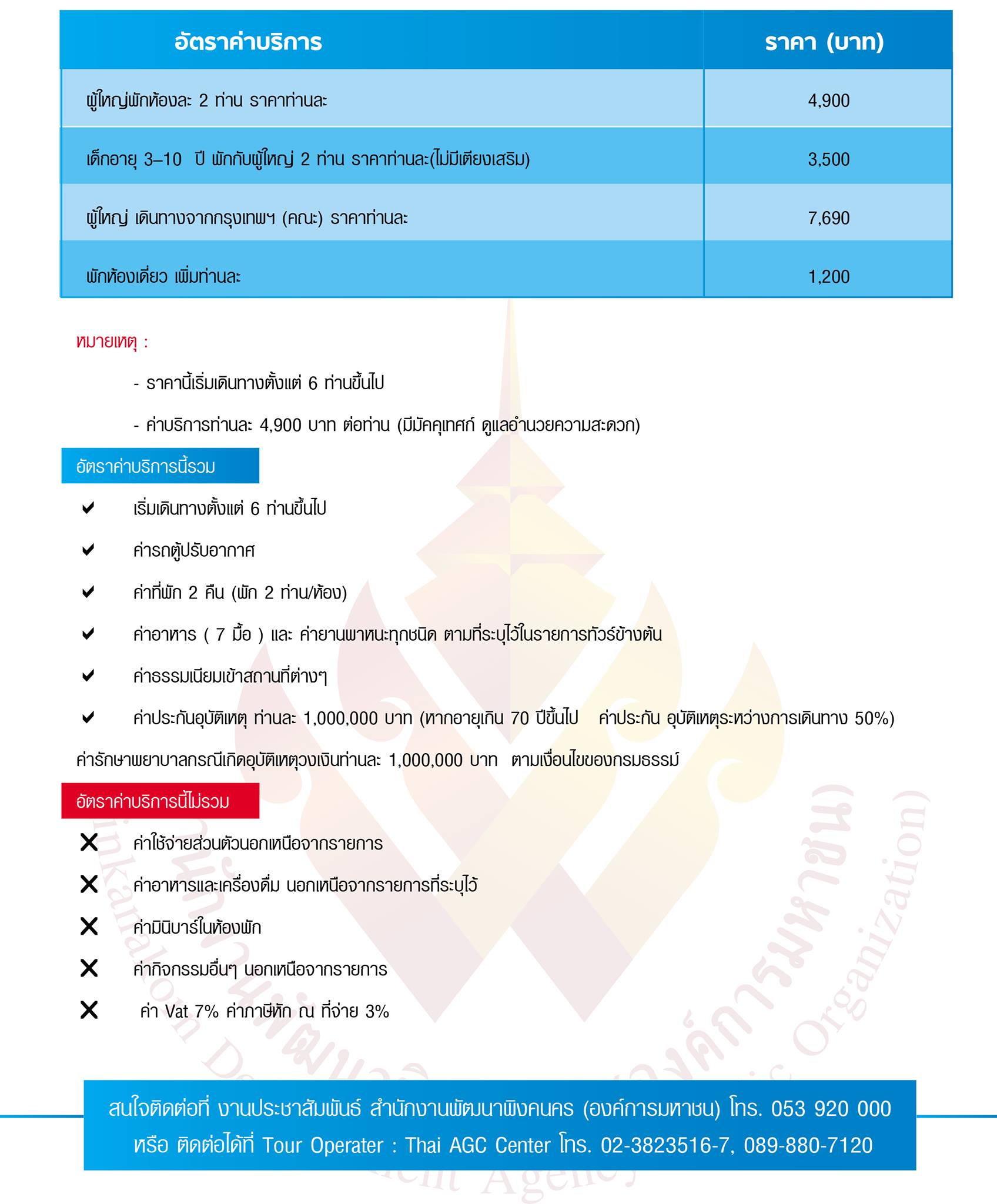 หรือ คิดต่อที่ Tour Operater : Thai AGC Center โทร. 02-3823516-7, 089-880-7120