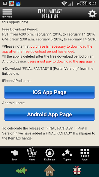 เกมฟรีบอกด้วย Final Fantasy II (mobile) กับแอพ FFportal