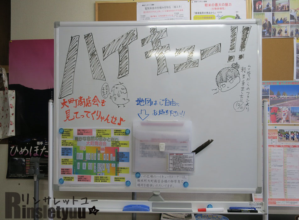 จากนั้นคุณลุงพาเดินไปอีกหน่อย เป็นร้านที่เป็นศูนย์รวมข้อมูลสำหรับสาวๆที่มาตามไฮคิวในเมืองคารุไมค่ะ ร้านยังไม่เปิดดีด้วยซ้ำ ไปขอกวนแต่เช้า ไม่มีภาพหน้าร้านนะคะ เพราะตอนแรกเรานึกว่าคุณลุงแค่จะแวะเปลี่ยนตัวกับลูกชาย มีแต่ภาพด้านในร้านค่ะ