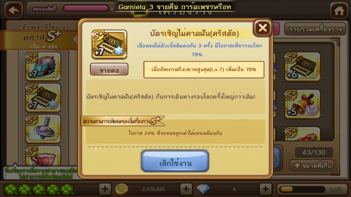 แข่งกับอลิสที่ไรแพ้ตลอดใช้การ์ดแกงค์3สาว แพ้หมดเลย สามหลังออกบ่อยมากบางตาออกทุกตาเลยจนแบบถอนหายใจ ขอถามอีกคำถามครับ อัพเกรดจี้ s+ ใช้อะไรอัพดีครับแล้วออฟเสริมมีอันดีๆบางไหม ได้แต่ตกเกาะร้างกับเพิ่มพล