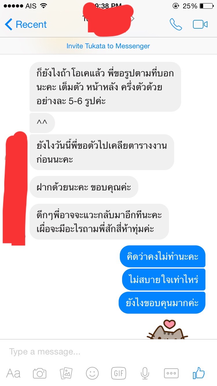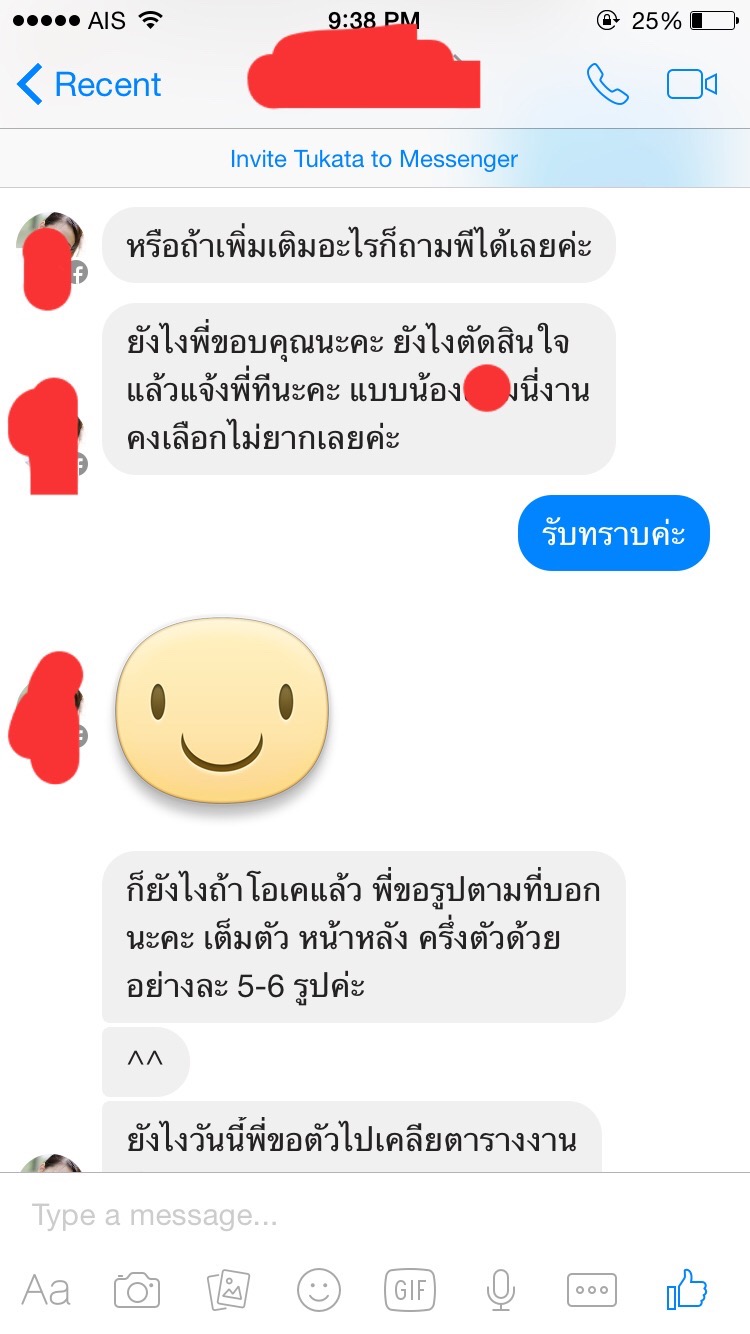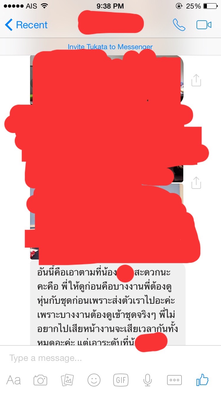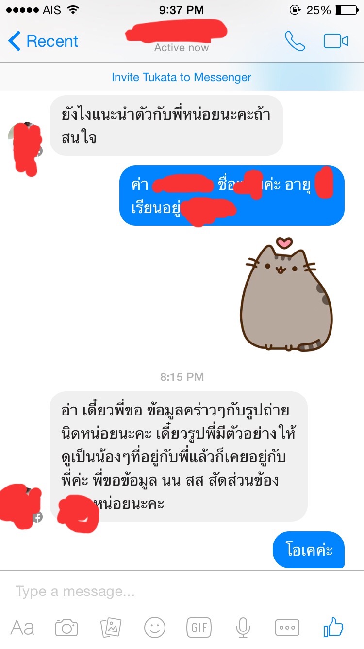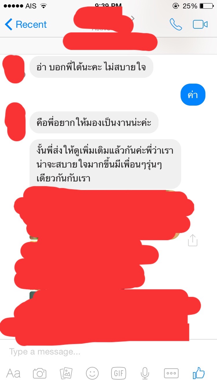 เราเริ่มคิดว่าเอาล่ะ มันไม่ใช่ล่ะ เราจึงบอกเขาว่าขอคิดก่อนนะคะ ละไปปรึกษาพี่คนนึงที่ไว้ใจได่ แล้วก็อยู่ในวงการพวกนี้ พี่เขาบอกเลยว่าคนทำงานเขาไม่ทำกันแบบนี้ คือว่าง่ายๆเขามาหลอกเอารูปเราไปทำอะไรก็ไม่รู้
