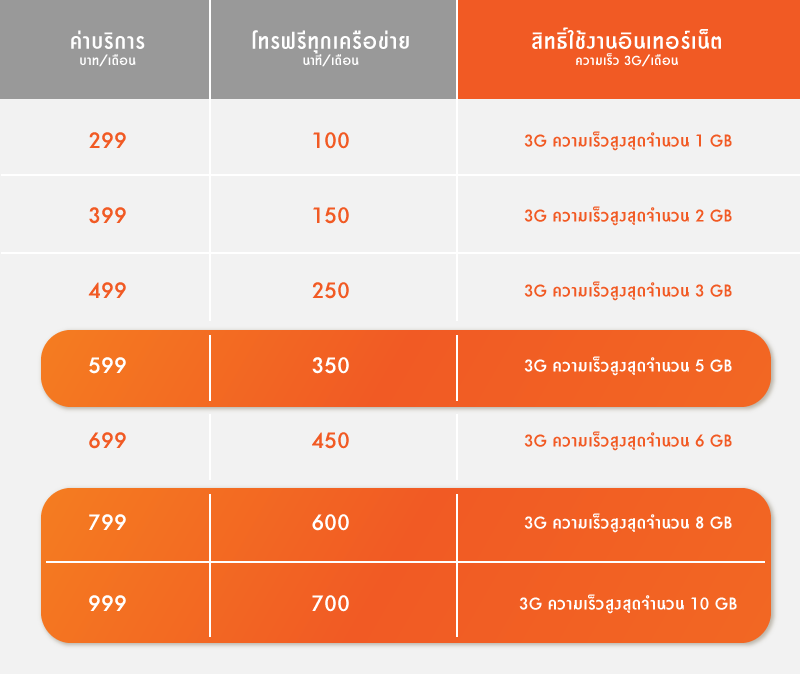 ผู้ใช้บริการจะได้รับสิทธิ์ใช้งานอินเทอร์เน็ตความเร็ว 3G สูงสุด ตามจำนวนที่ระบุ หลังจากนั้น สามารถใช้งานได้อย่างต่อเนื่องที่ความเร็วสูงสุด 384 Kbps.