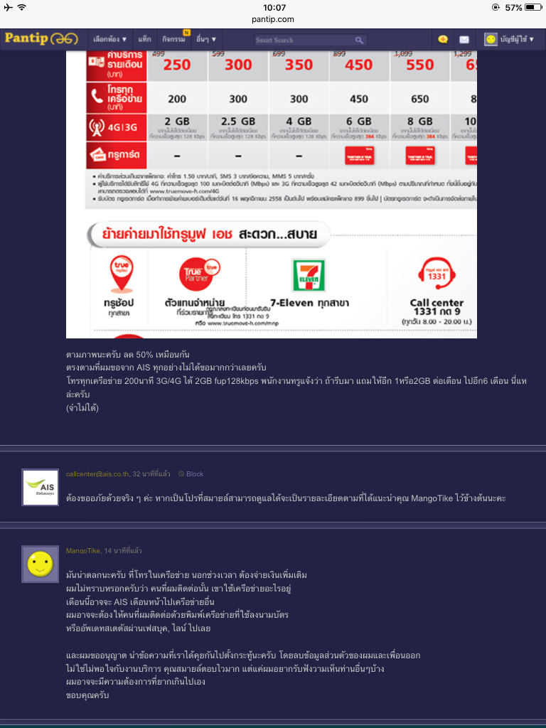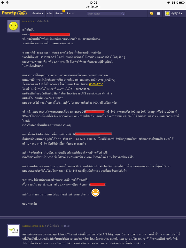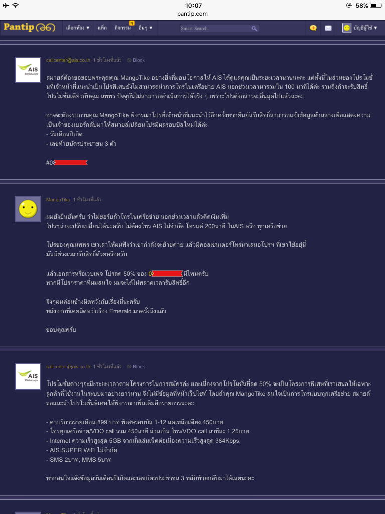 กระทู้บ่นโปรโมชัน ที่ได้ข้อเสนอจาก AIS