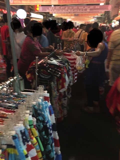 พ่อค้าแม่ค้าแผงลอยจากที่ไหนก็ไม่รู้โผล่มาวางของขายยึดจับจองพื้นที่บนถนนทางเดินกันใหญ่เลย