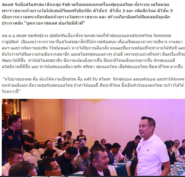 สมาคมลูกหนังปรับโฉมใหม่หลังตั้งบริษัทพรีเมียร์ลีกไทยแลนด์ (PLT) รับหน้าที่จัดลีกสูงสุดและดิวิชั่น 1 พร้อมดึงผู้อำนวยการเอเอฟซีนั่งรองประธาน Read more at http://www.fourfourtwo.com/th/news/ochmaihm-