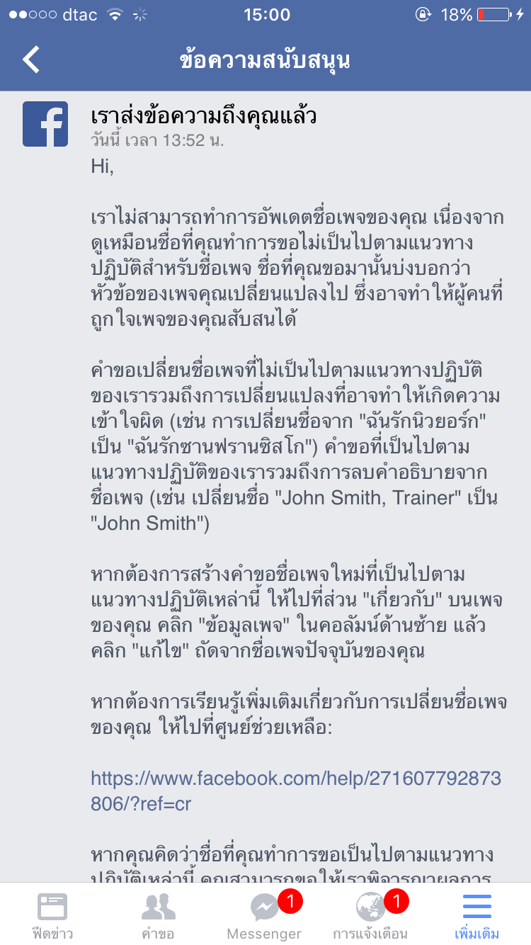 พยายามเปลี่ยนชื่อเพจมา3ครั้งแต่ไม่สามารถเปลี่ยนได้