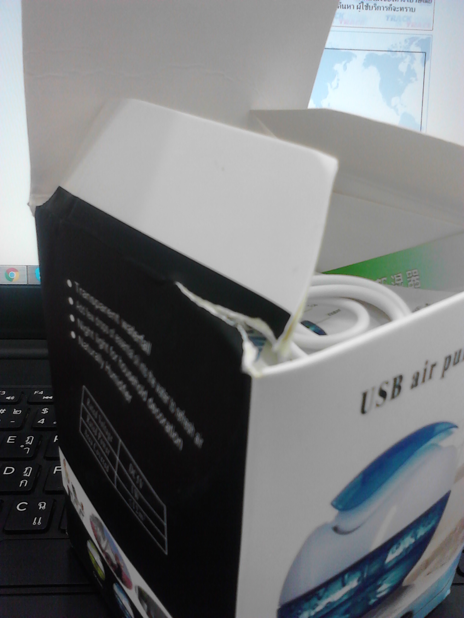 ครั้งแรกที่เห็นกล่องพัสดุ อึ้งแปร๊ยบบบบ คือแบบกล่องมันเล็กจิ๋วมากๆ คิดในใจว่ามันส่งถูกป่าวอ๊ะ !! เพราะมีสินค้ายี่ห้อเดียวกันแต่คนละรุ่น ต่างกันที่เป็นระบบ USB ก็คือ USB Humidifier Fresh Air Purifier Moistener Steam Aroma Diffuser (Light Blue)