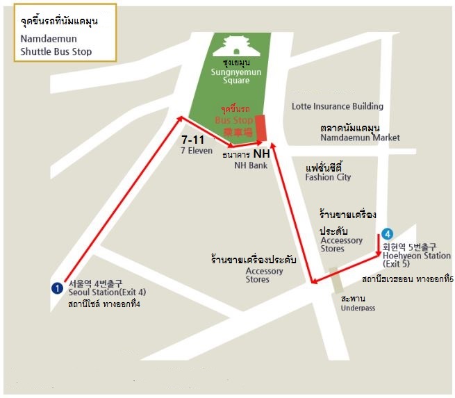 เส้นอินซาดง(Insadong) เส้นนัมแดมุน(Namdaemoon) -> เกาะนามิ