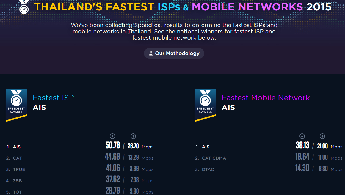 ประเทศไทยลำดับที่ 47 ของโลก (เหนือกว่าสหรัฐฯ) เร็วสุด AIS TRUE DTAC