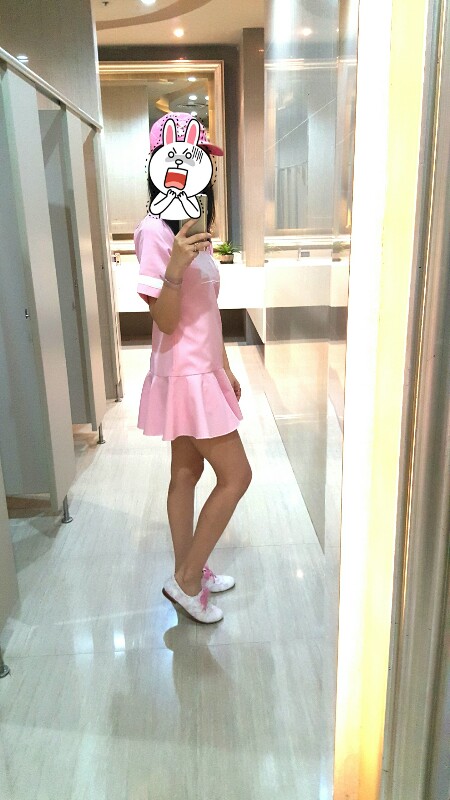 เรายืนถ่ายรูปเล่นอยู่ตรงกระจก หน้าห้องน้ำห้องสุดท้าย