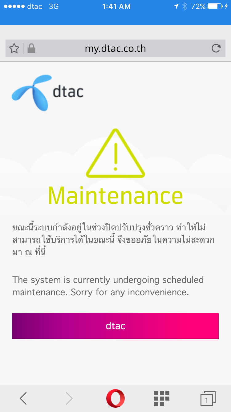 คราวหน้า คราวหลัง อยากให้ Dtac มีการแจ้งเตือนล่วงหน้าหน่อยก็ดีนะครับ