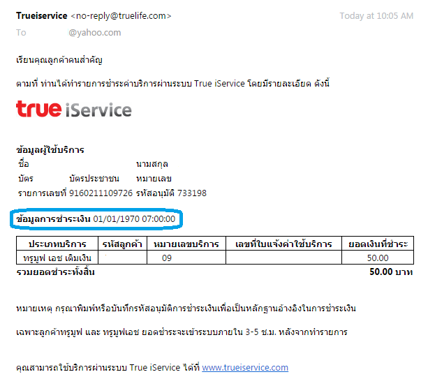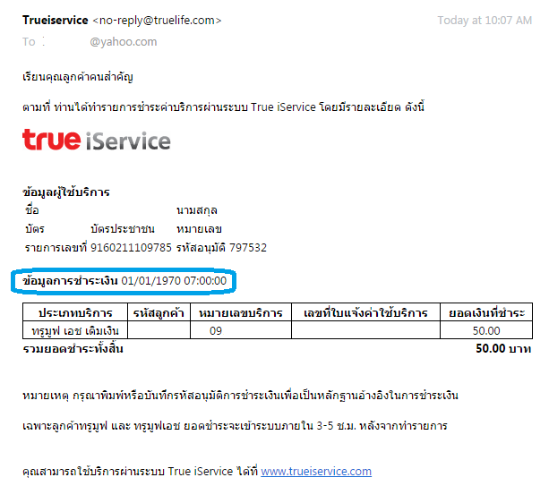เติมเงินโทรศัพท์ผ่านแอพiServiceแล้ววันที่เพี้ยนทุกเมล์เลย