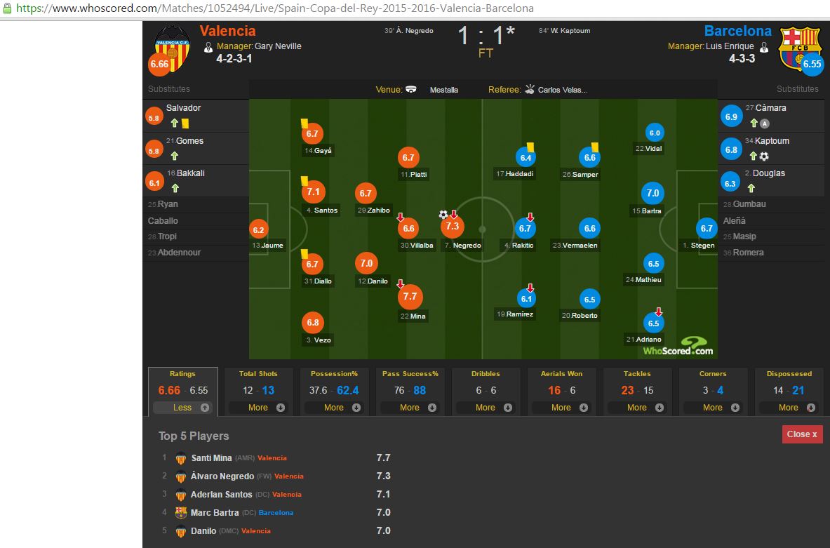 นัดนี้เสมอกัน 1-1 รวมผลสองนัด 8-1 ไปรอชิงกับเซบีย่าหรือเซลต้า ที่จะแข่งเลคสองวันนี้ที่สนามบ้านเซลต้าตีสองครึ่งค่ะ