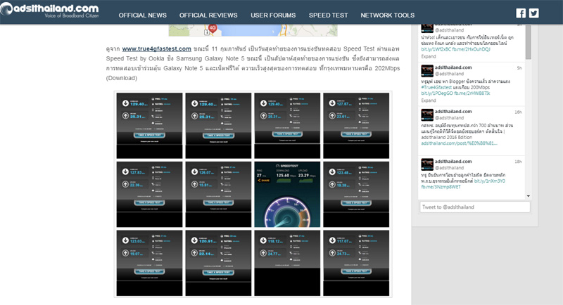 ดูจาก www.true4gfastest.com ขณะนี้ 11 กุมภาพันธ์ เป็นวันสุดท้ายของการแข่งขันทดสอบ Speed Test ผ่านแอพ Speed Test by Ookla ชิง Samsung Galaxy Note 5 ขณะนี้ เป็นสัปดาห์สุดท้ายของการแข่งขัน ซึ่งยังสามารถส่งผลการทดสอบเข้าร่วมลุ้น Galaxy Note 5 และเน็ตฟรีได้ ความเร็วสูงสุดของการทดสอบ ที่กรุงเทพมหานครคือ 202Mbps (Download)