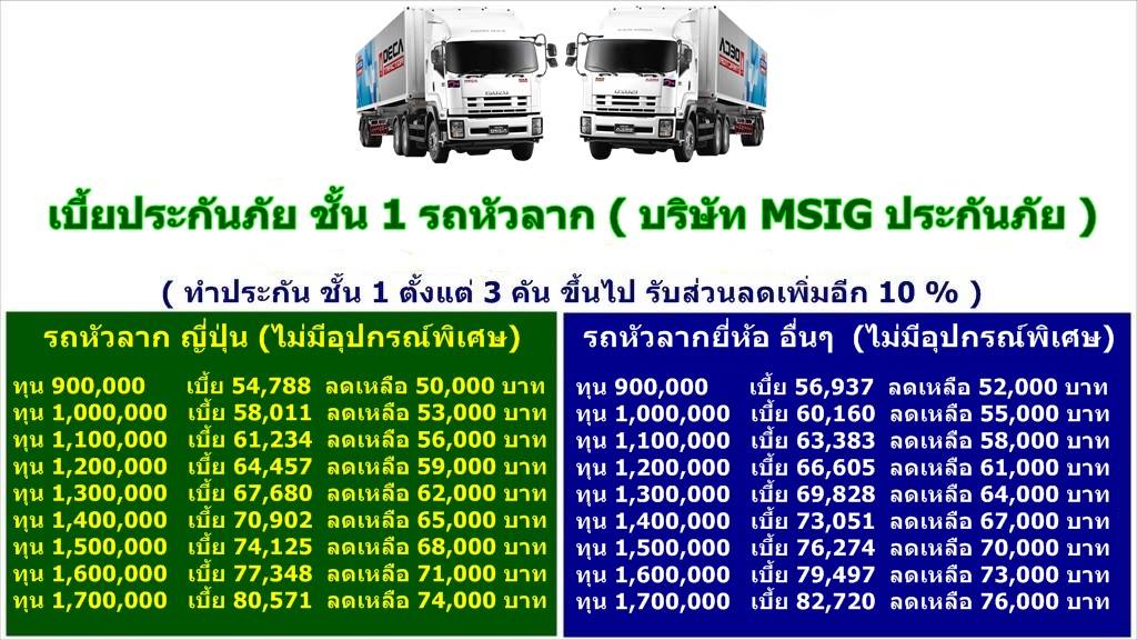 ประกันรถบรรทุกราคาถูก ชั้น 1,ชั้น3 และ 3+ ,2+ รถหัวลาก ,รถสิบล้อ,รถพ่วง , รถบรรทุกอื่นๆ จาก วิริยะ,กรุงเทพ,MSIG,นำสิน