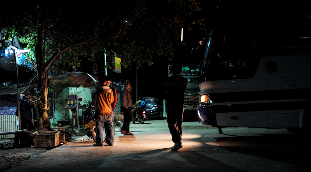 ผมเผลอหลับไปมาตื่นอีกทีช่วงที่รถแวะจอดในฝั่งลาว เป็นเหมือนสถานีขึ้นรถโดยสารขนาดเล็กถ้าเทียบแล้วน่าจะเหมือนกิ่งอำเภอบ้านเราครับ
