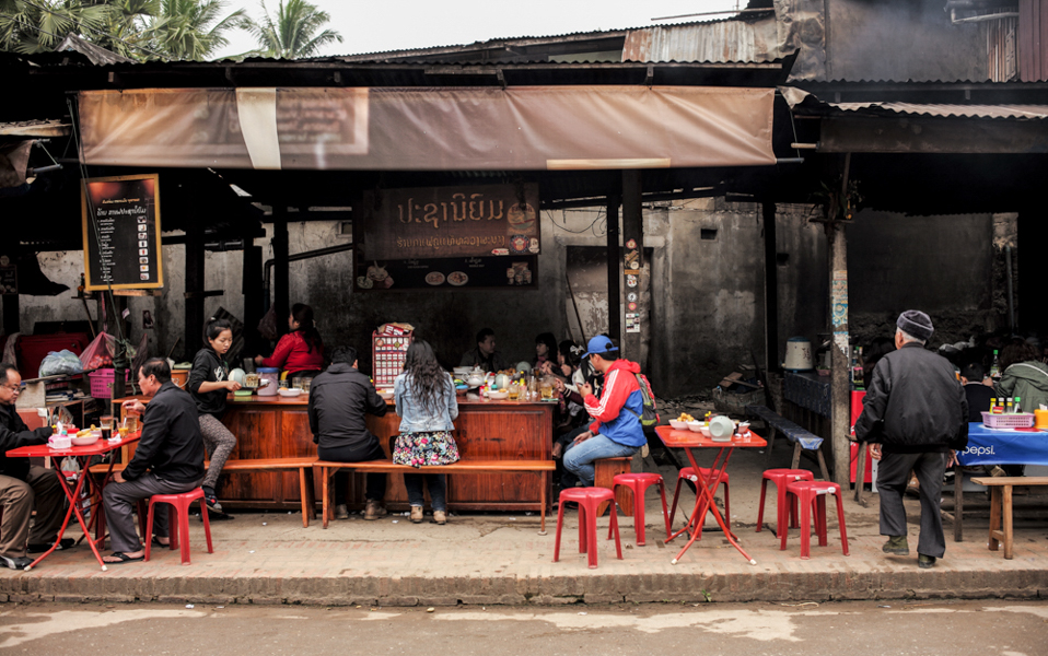 ถึงซักทีครับหลวงพระบางผมมาถึงหลวงพระบางเช้าตรู่ตีห้า ลงจากรถเรียกว่าเละเป็นโจ๊กกันเลยทีเดียวครับ เข้าห้องน้ำห้องท่าที่บขสที่นั่นแล้วหาสามล้อเดินทางเข้าส่วนที่พัก ที่พักผมไม่ได้จองไว้ก่อนล่วงหน้าเพราะการเดินทางมาที่นี่ผมไม่ได้วางแผนมาก่อน คือมีห้องว่างที่ไหนก้นอนที่นั่น แต่ดัน ไม่มีห้องพักที่ไหนว่างเลยในเช้าวันนั้น ผมเดินหาห้องพักราคาไม่แรงมากนักอยู่ประมาร ชม เศษๆ ด้วยอากาศที่หน้าและร่างกายที่เดินทางมาแบบทุลักทุเล ตอนนั้นในใจคิดว่าต้องการพักและอาบน้ำ ทั้งอากาศที่หนาวมากในช่วงเช้าของที่นั่นเรียกว่าแทบจะนอนข้างทางเลยทีเดียว 55 แต่ในที่สุดผมก็ได้ห้องพัก ราคาไม่แรงมาก รีบจัดเเจงรื้อกระเป๋า อาบน้ำ เหลือเชื่อมากว่า เมื่อร่างกายที่ล้ามาโดนน้ำอุ่นและเจอเตียงนุ่มๆ มันคือสวรรค์ดีๆนี่เองครับ ผมภาพตัดไป รู้ตัวอีกทีก็ หกโมงครึ่งแล้ว รีบตื่นออกไปเดินตลาดเช้าที่นั่นและหาอะไรทาน แน่นอนว่าคนที่มาที่นี่มาแล้วจะไม่ค่อยพลาดกินกันในตอนเช้าก็น่าจะเป็นที่นี่แหละครับ ร้านกาแฟประชานิยม คนเยอะมากมายมหาศาล เส็ดจากที่นี่ก็เดินตลาดเช้า ส่วนตัวตลาดที่นี่ไม่ได้ต่างรัยกับตลาดนัดบ้านเราเท่าไหร่ครับ