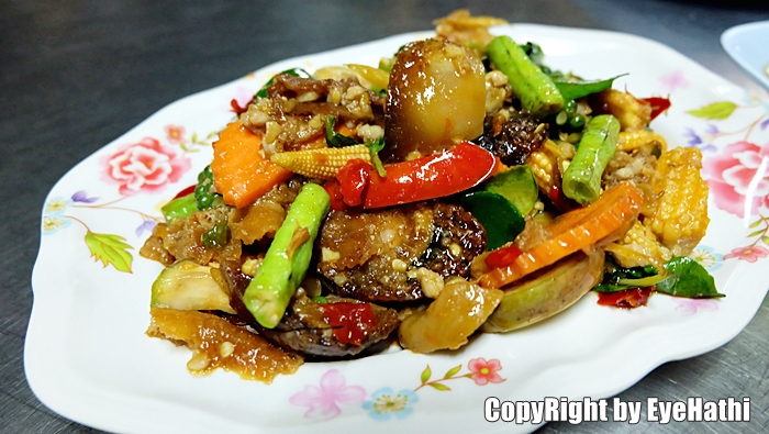 จานแรก ไข่เยี่ยวม้าผัดกะเพรา เผ็ดดีค่ะเครื่องเยอะเลย