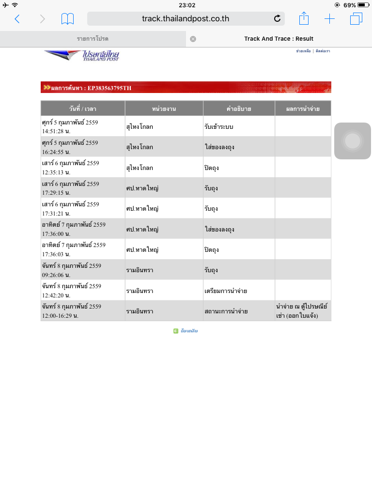 ไปรษณีย์ไทยขึ้นนำจ่ายสำเร็จผู้รับรับเอง แต่ที่อยู่ที่จัดส่งคือสำนักงานใหญ่ Advice