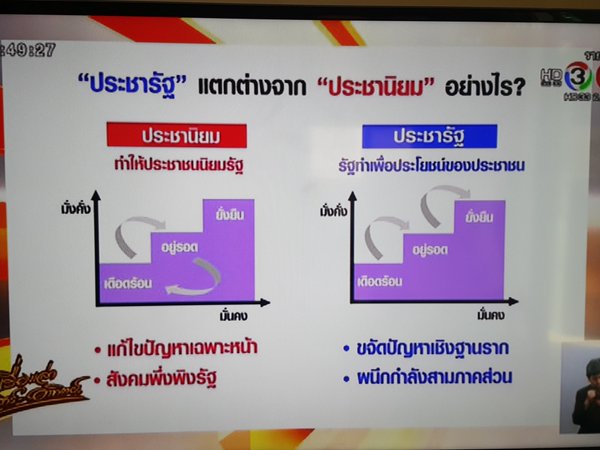 ขอเอาสไลด์ของโฆษกรับบาล ว่าด้วยความแตกต่างระหว่าง ประชารัฐ กับ ประชานิยมมาให้ดูนะครับ