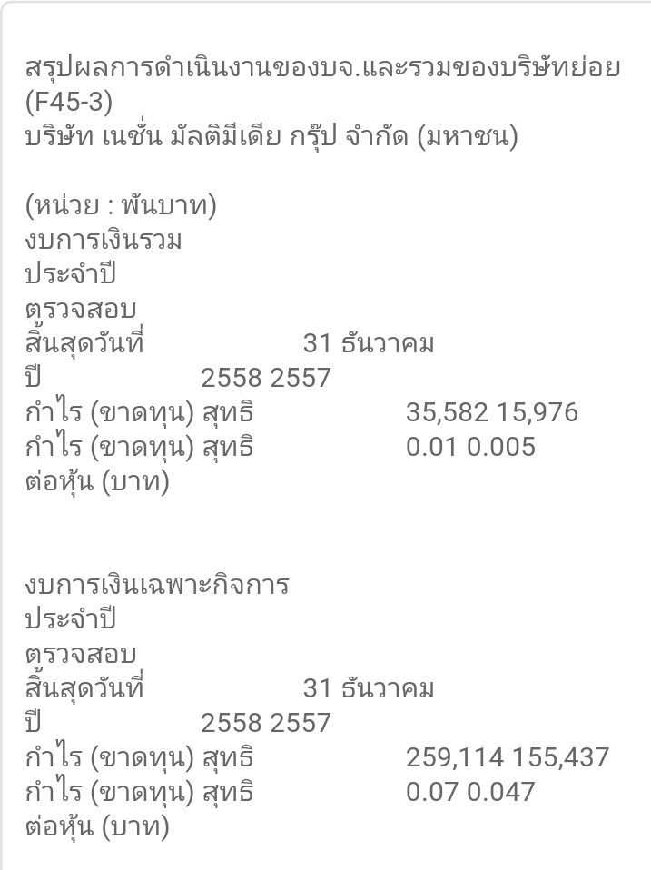 NMG สรุปผลประกอบการปี2558 มีจ่ายเงินปันผล0.03บาท