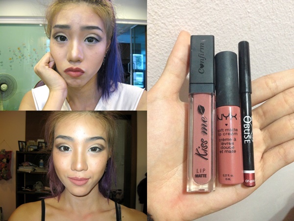 ทาผสมกับ Kiss me Lip matte เบอร์ 05 สี Secrets nude