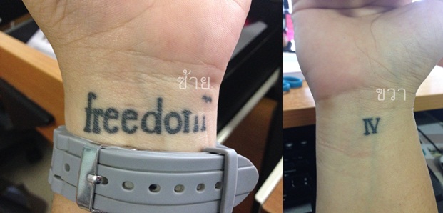 แล้วที่ข้อมือทั้งสองข้างมีรอยสักอยู่