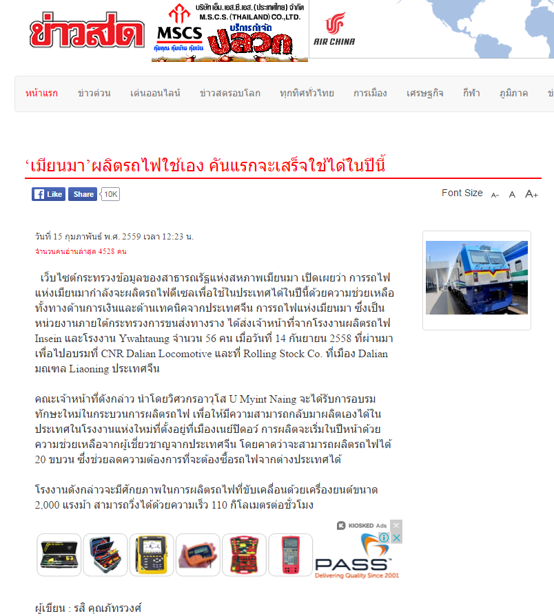 รถไฟทำความเร็วได้ ตั้ง 110 กิโลเมตร/ชั่วโมง