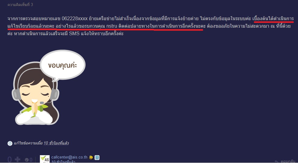 หวังว่า aisและพนักงาน ได้อัพเดทข้อมูลให้ตรงตามที่แจ้งไว้แล้วนะ และเลิกพฤติกรรมแย่ๆ เวลาที่ย้ายเครือข่าย คำตอบที่โกหก