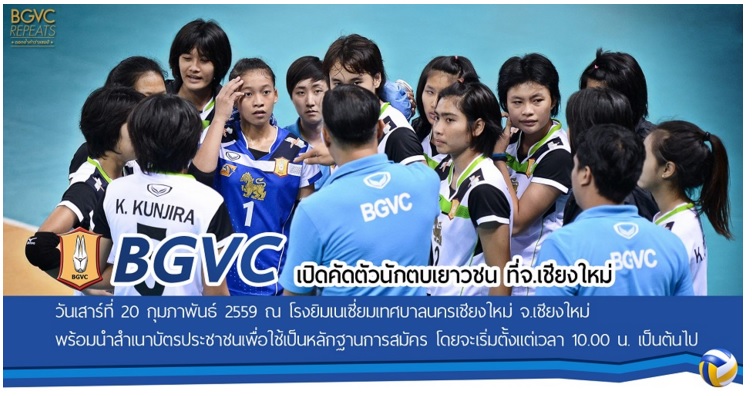 BGVC NEWS: บีจีวีซี เปิดคัดนักตบลูกยางสาวดาวรุ่งสนาม 2 วันที่ 20 กพ.นี้ ที่ จ.เชียงใหม่