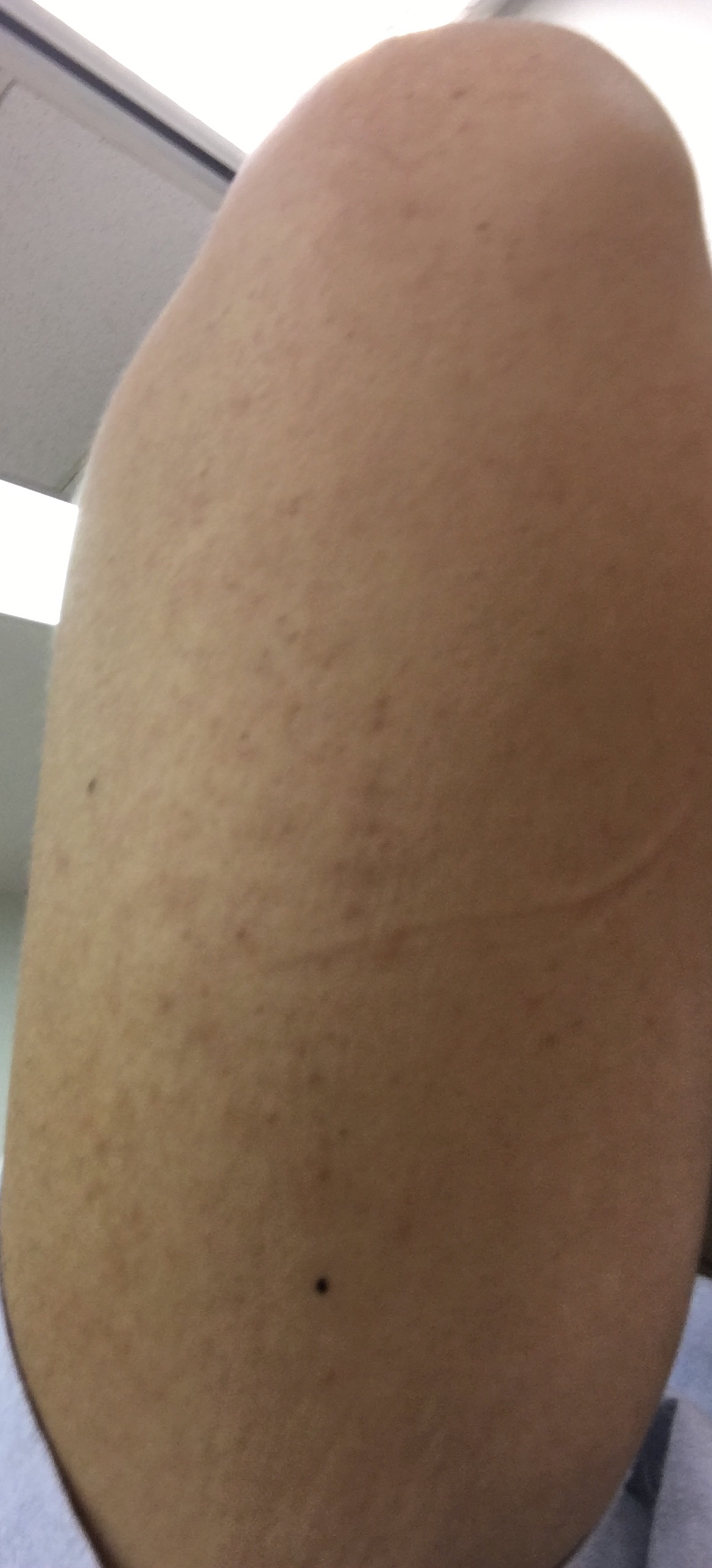 ผมเป็นขนคุดหนักมากครับเป็นตั้งแต่เกิด ตอนเด็กเป็นแค่ตุ่มๆสากๆเต็มแขนแต่สีเดียวกัน ตอนโตขึ้นแขนเริ่มเนียนขึ้นแต่เป็นจุดแดงๆเต็มเลยครับดูแย่มาก ผมเคยลองรักษาที่บ้านมาทุกวิธีและครับไม่ดีขึ้นเลยเลยว่าจะไป