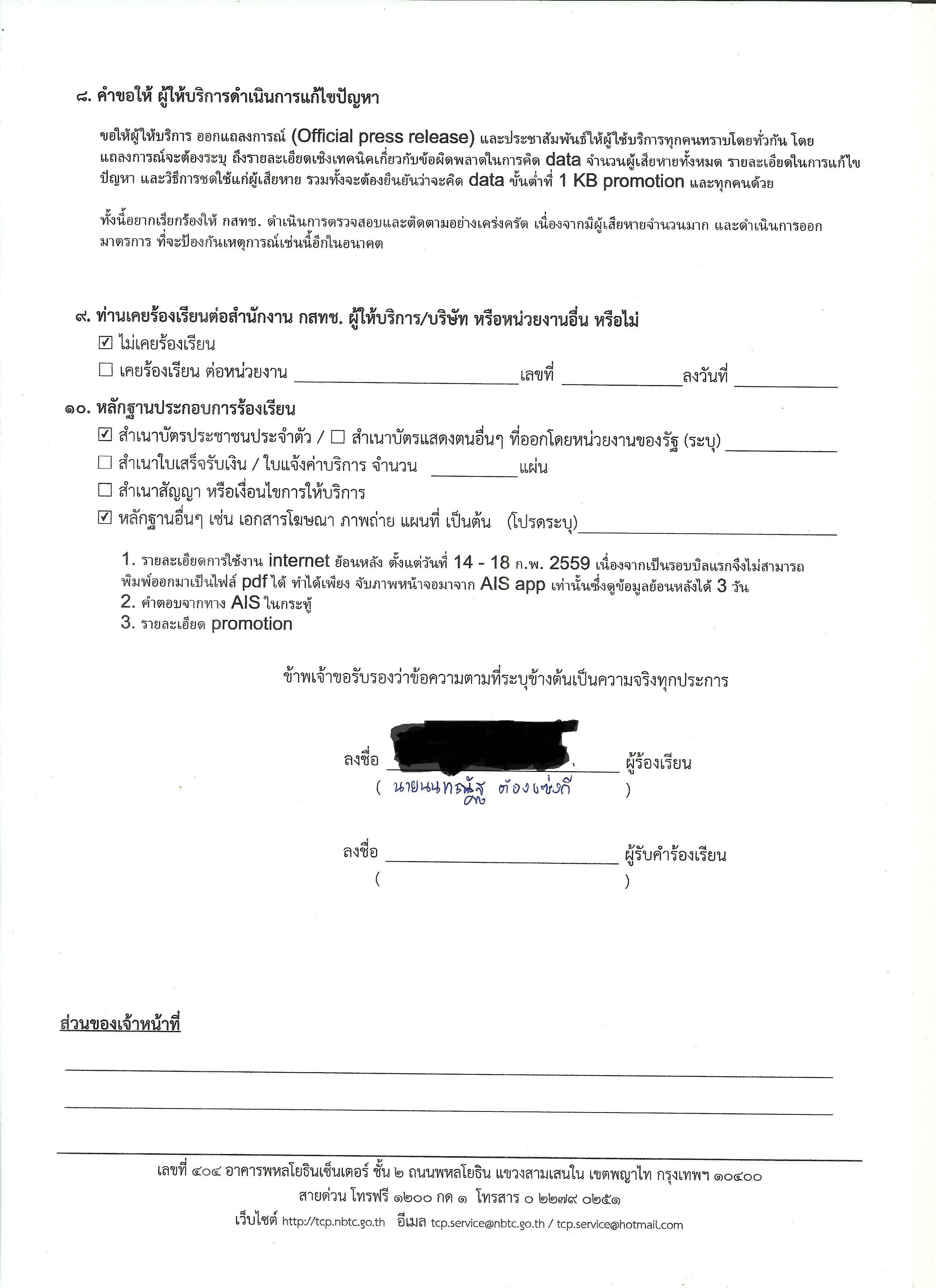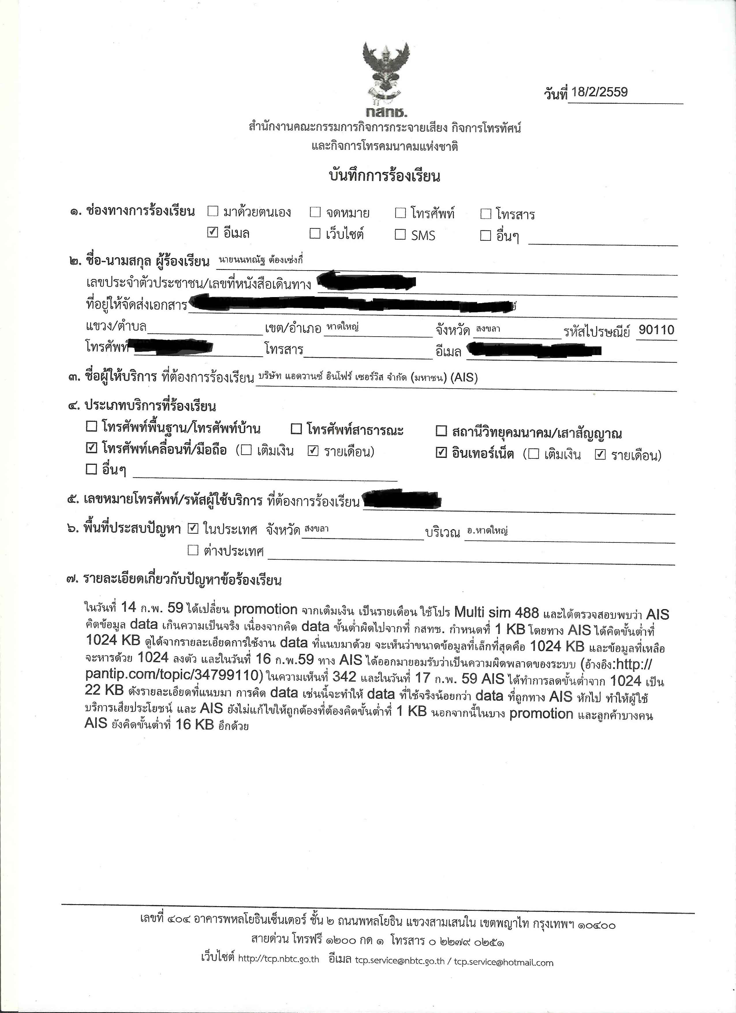 26-2-59 เชิญร่วมตรวจสอบและเป็นพยานกับคำตอบของ AIS ครับ