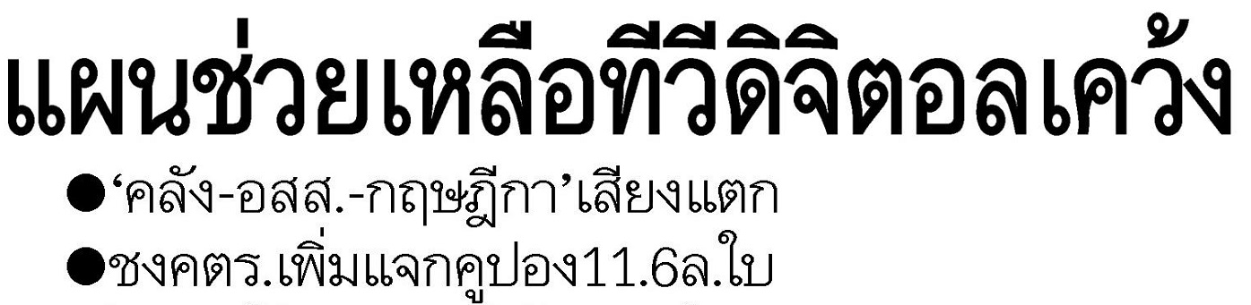 บอร์ด กสทช.ยังไร้ข้อสรุปแนวช่วยเหลือทีวีดิจิตอล เหตุไม่ลงตัว หลังคลัง-อสส.-กฤษฎีกามีความเห็นคนละทาง ลุ้นประชุมรอบต่อไปต้น มี.ค.นี้ เล็งเสนอ คตร.เห็นชอบแจกคูปองหนุนค่าอุปกรณ์รับชม 690 บาท เพิ่มอีก 11.6 ล้านใบ