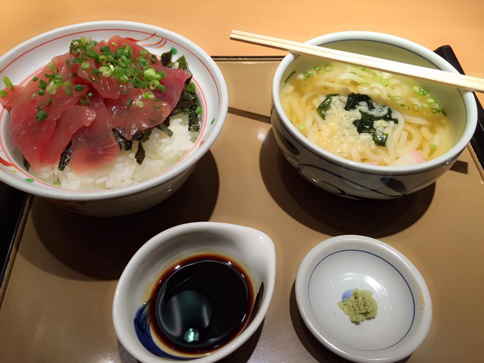 อาหารเซตเช่นเคย ข้าวหน้าปลามากุโร กับ อุด้ง ครับ