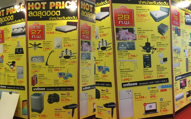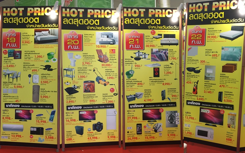 เปิดตัวกันที่ Hot Price เป็นพวกเครื่องใช้ไฟฟ้านาทีทอง ซึ่งจะมีจำนวนจำกัด แต่ราคายั่วใจสุดๆ เงื่อนไขในการเขาร่วมเขามีเขียนไว้หน้างาน คนที่จะเข้าร่วมได้ต้องมีคูปองซะก่อน น่าจะเพื่อความสงบจากการแย่งชิง ซึ่งเขาจะมีวันละ 3 รอบ 13.00 / 16.00 / 19.00 น.