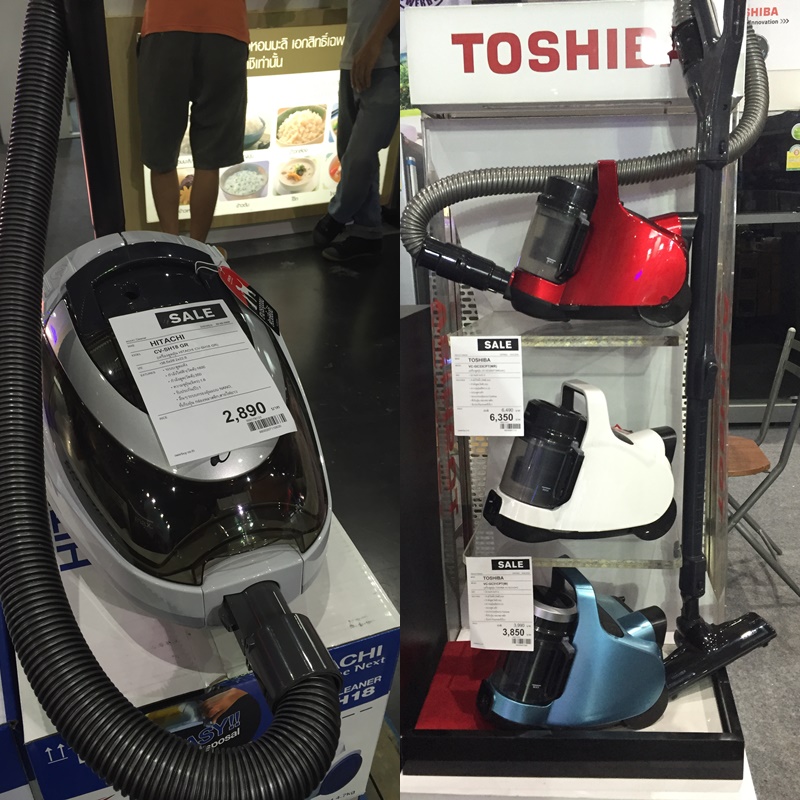 ต่อกันที่เครื่องดูดฝุ่นเลยครับ เอาใจแม่บ้านกันหน่อย (แต่จริงๆ แล้วคนใช้อาจจะเป็นพ่อบ้าน...) ไม่ค่อยมีความรู้เรื่องเจ้าเครื่องดูดฝุ่นเท่าไหร่ แต่ถ้าให้ดูผมแอบสนใจ Toshiba นะ