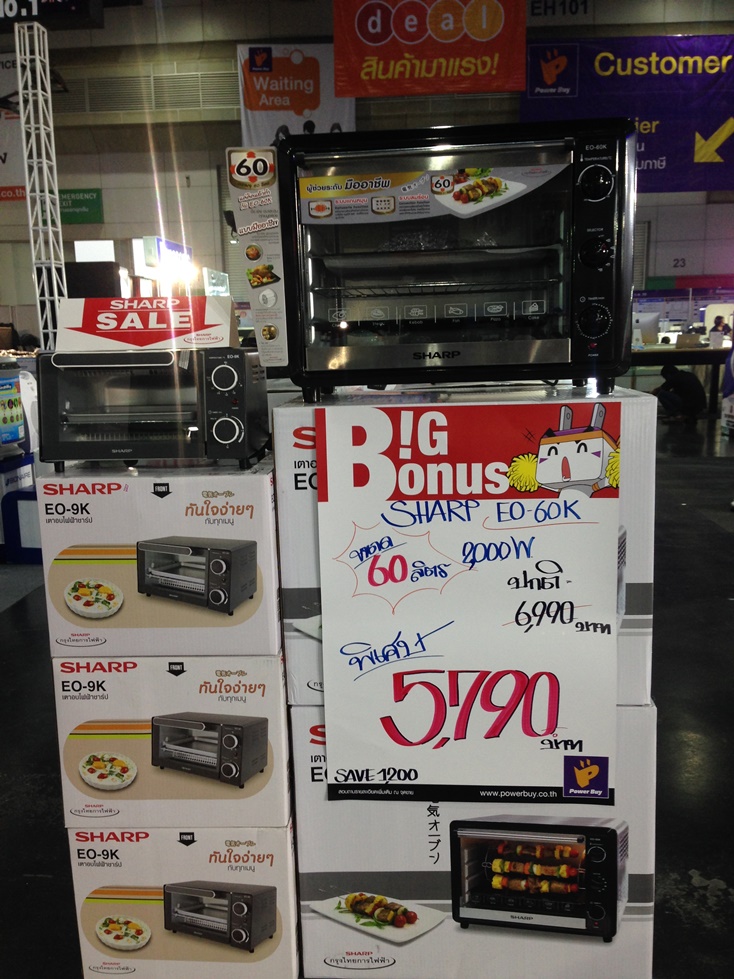 ไหนๆ กินเย็นๆ ไปแล้วมาดูเตาอบ ไว้กินอาหารร้อนๆ บ้าง ยี่ห้อที่สนใจคงจะเป็น Sharp กับ Electrolux ตามที่ถ่ายมา แต่ spec เทียบกันไม่ได้เพราะขนาดต่างกันเยอะ รอบนี้เตาอบไม่ได้ตังค์ผม เพิ่งซื้อไป รอด!