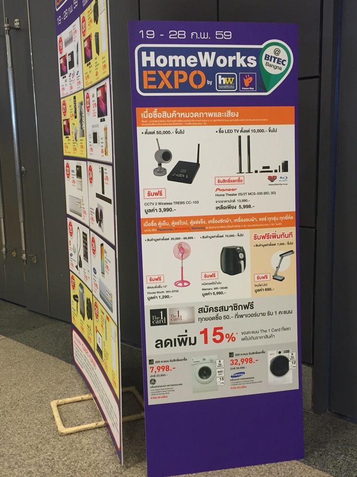 ไม่พูดพร่ำทำเพลง ขอกระหน่ำด้วยโปรฯ น่าสนใจแบบเน้นๆ มาให้ดูก่อน เพื่อประกอบการตัดสินใจช่วยให้การระบายเงินในกระเป๋าได้อย่างเป็นระบบ และคล่องแคล่วว่องไวมากขึ้น (พูดได้เลยว่า มีหมดตัวอ่ะครับงานนี้) ลืมบอกงานเขามีตั้งแต่ 19-28 ก.พ. 59 ที่ไบเทค บางนานะ และเพื่อความสะดวกผมขอแบ่งโปรตามประเภทเครื่องใช้ไฟฟ้าเลยนะครับ จะได้ search หากันง่ายๆ ว่าแล้วก็ลุยกันเลย!!! (โปรที่เก็บมาผมเลือกตามที่ผมสนใจก่อนนะ ขาดตกบกพร่องอะไรไปว่าได้ แต่อย่าแรงมาก เดี๋ยวผมท้อแท้ -.-“)