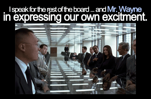บริษัทมีประธานเป็นแบทแมน เข้าห้องประชุมก็หลับอย่างเดียว หน้าที่จริงคือจับผู้ร้าย ส่วนการบริหารก็ให้ลูกน้องอย่าง Lucious Fox หรือ Alfred ทำ