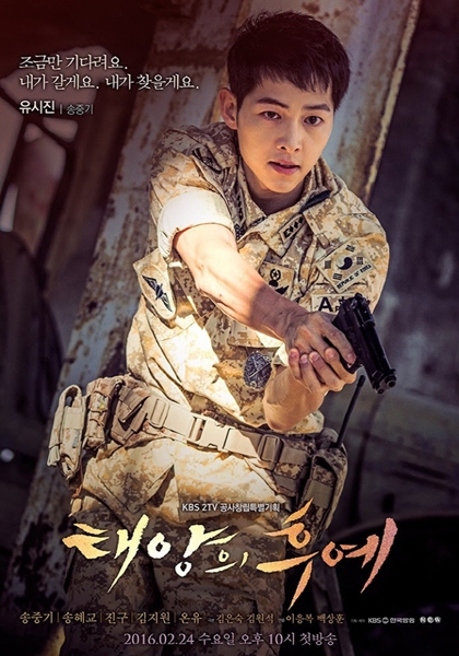 ชื่อเรื่อง : 태양의 후예 / Descendants of the Sun /太陽的後裔 ประเภท : เมโลดราม่า , โรแมนติก จำนสนตอน : 16 (จบแล้ว) ออกาอากาศช่อง : KBS2 ช่วงเวลาออกอากาศ : 24 ก.พ. 2559 - 14 เม.ย. 2559 เวลาออกอากาศ : พุธ พฤหัส