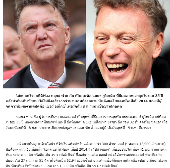 ก่อนหน้านี้ผมตั้งกะทู้ว่ามอยส์คุมแมนยูดีกว่าฟาลกัล กับมีโค้ชคีร์บรอดในพันทิปว่าผมดูบอลไม่เป็น ผมก็เด็กผีนะดูบอลมาก็มาก ณ ตอนนี้สื่อต่างๆก็เริ่มลงความเห็นกันแล้วว่า ฟาลกัลห่วยกว่ามอยส์ แต่ผมก็ไม่ได้อยากให้มอยส์กลับมาหรอกนะ
