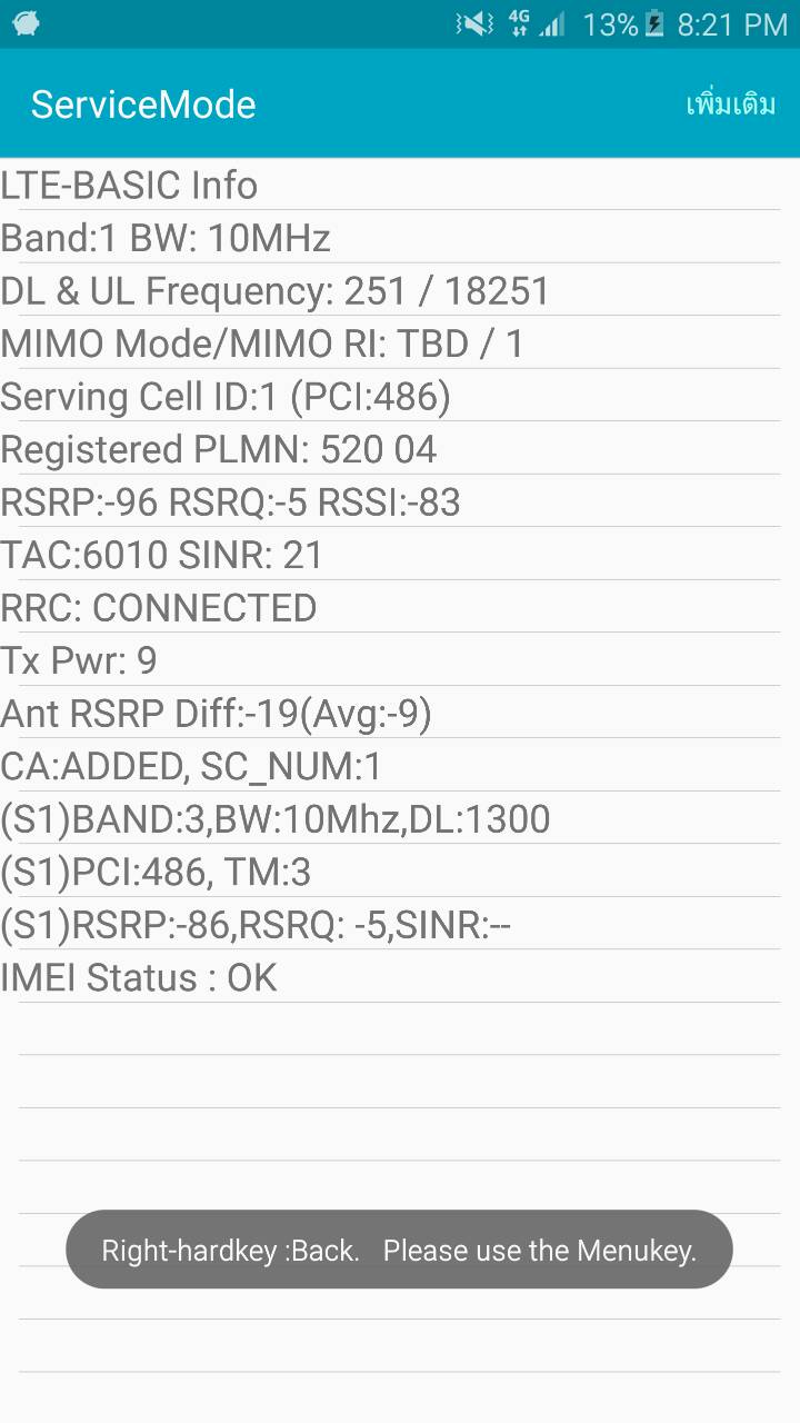 จากรูป กด *#0011# โทรออกใน note5 เช๊ค bw ได้ 10 Mhz.
