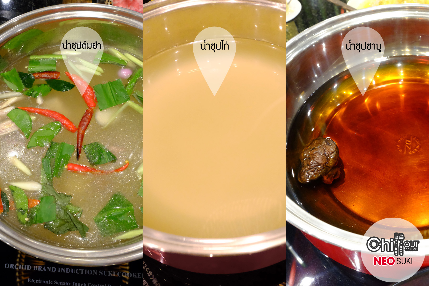 ● นีโอสุกี้ เค้ามีสโลแกนของร้านว่า "นีโอสุกี้ สุกี้นานาชาติ อร่อยถูกใจกับน้ำจิ้มหลากหลาย” เพราะจริงๆ แล้ว ที่นี่เค้ามีน้ำซุปให้เราเลือกได้ ถึง 3 ซุป