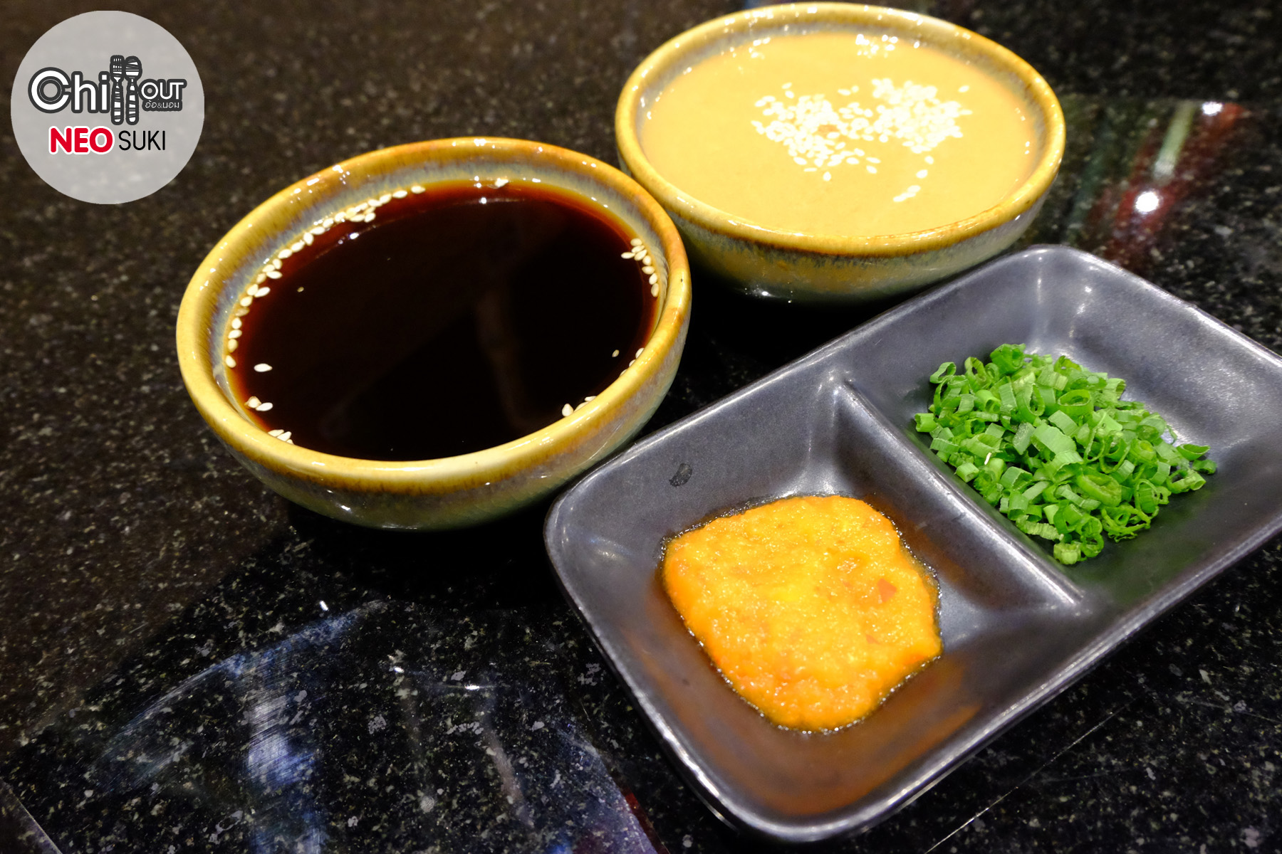▲ น้ำจิ้มสูตรชาบู เค้าจะเสริฟ น้ำจิ้มที่เป็นงาขาว +ซอสพอนสึ พร้อมเครื่องเคียง
